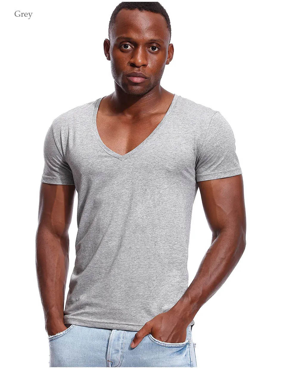 V Neck T Shirts Men Deep V Neck Tee Muscle Slim Fit Low Cut Stretch Tshirt Clothing Shoes Jewelry